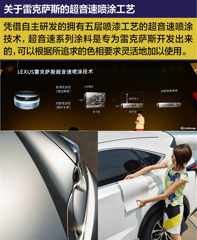 整車采用超音速噴涂工藝 用科技創造色彩之美,雷克薩斯汽車做到了,當雷克薩斯的色彩設計師從成百上千種樣本里創造出專屬于雷克薩斯的色彩時,如何將其在車身上完美呈現質感與性格,則是他們不懈的追求。